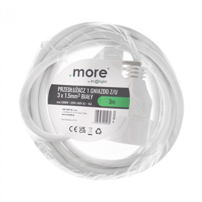 Ten przedłużacz oferuje wygodę i elastyczność w korzystaniu z różnych urządzeń elektrycznych, zapewniając jednocześnie niezawodność i bezpieczeństwo. Dzięki uziemieniu oraz możliwości obsługi dużej mocy (do 2500W) i natężenia (do 16A), jest idealnym rozwiązaniem do użytku domowego, biurowego lub warsztatowego. Długość przewodu wynosząca 3 metry zapewnia dodatkową elastyczność w ustawieniu urządzeń elektrycznych w różnych miejscach. Przekrój przewodu 3 x 1.5mm² gwarantuje nie tylko odpowiednią moc, ale także wystarczającą wytrzymałość i stabilność działania.