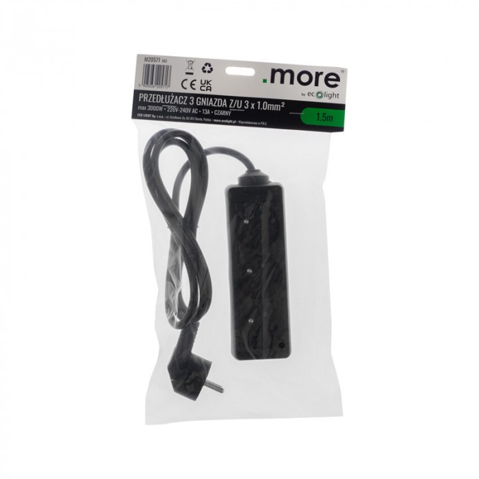 Przedłużacz 3 gniazda 1.5m 3x1.0mm2 CZARNY
