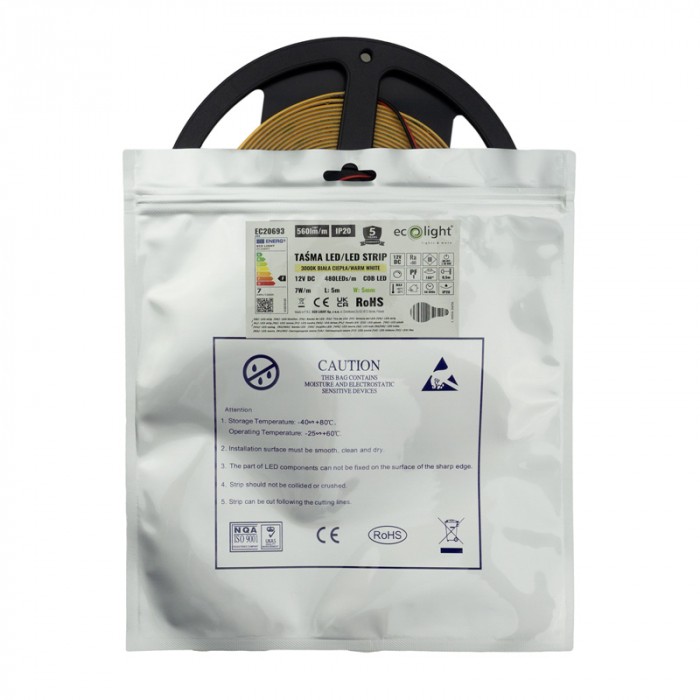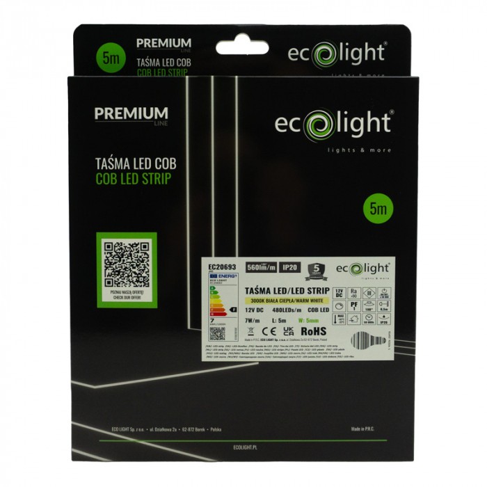 Taśma LED COB 12V 480 7W/m 3000K IP20 5mm/5 m P