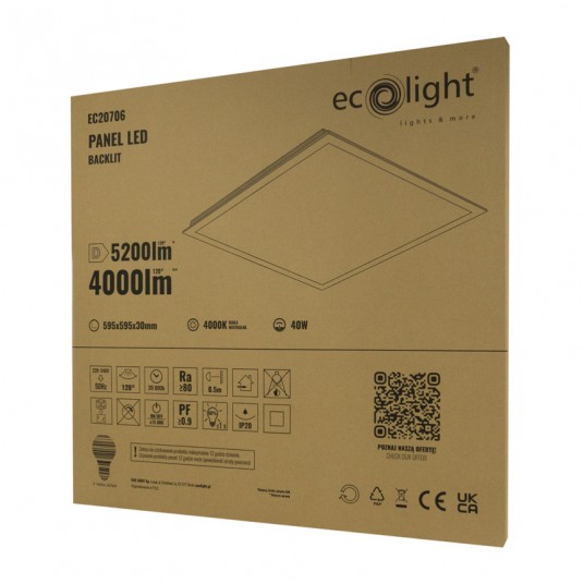 Panel LED Backlit 595x595x30 40W 4000lm 4000K to nowoczesne rozwiązanie oświetleniowe zaprojektowane do zastosowania w przestrzeniach biurowych, edukacyjnych i komercyjnych. Dzięki swoim wymiarom 595 x 595 x 30 mm idealnie pasuje do standardowych sufitów podwieszanych, a biały kolor ramki nadaje mu elegancki wygląd.