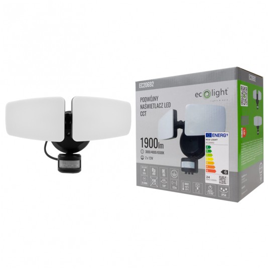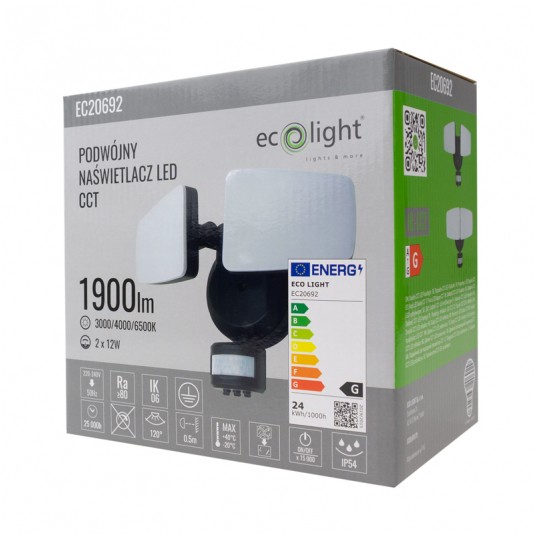 Dzięki podwójnemu źródłu światła o mocy 2x12W i strumieniu świetlnym 2x950 lumenów, zapewnia on jasne i skuteczne oświetlenie przestrzeni wokół domu, ogrodu, garażu czy podjazdu. Zintegrowany czujnik ruchu PIR automatycznie włącza światło, gdy wykryje ruch, co podnosi poziom bezpieczeństwa i oszczędza energię elektryczną.