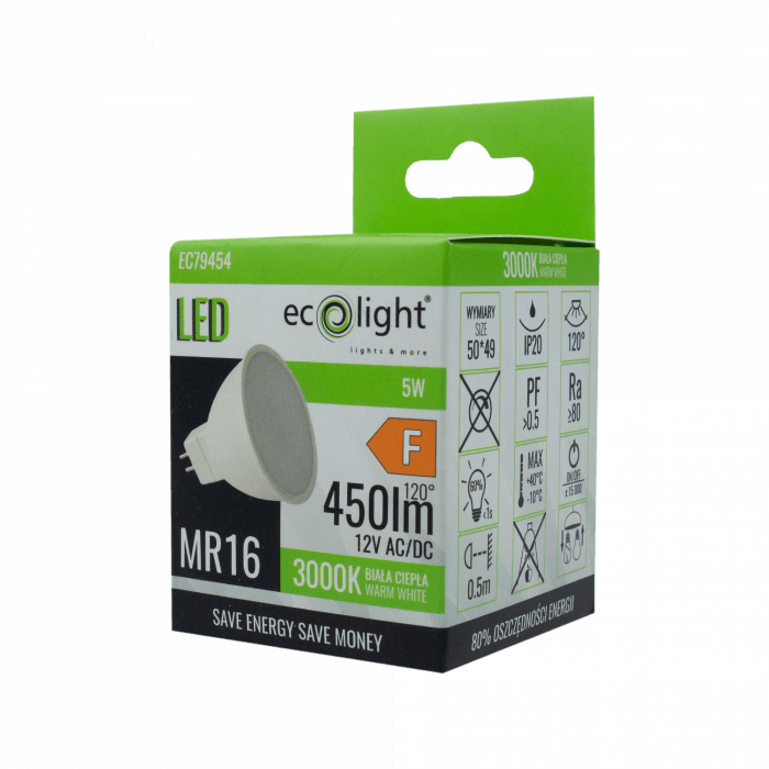 Żarówka LED MR16 5W 12V 3000K 450lm