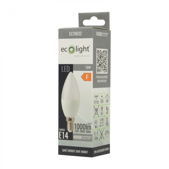 Poznaj niezawodne i wydajne źródło światła – żarówkę LED CANDLE E14 o mocy 10W i barwie 4000K, które doskonale sprawdzi się w Twoim domu czy biurze. Dzięki strumieniowi świetlnemu na poziomie 900 lumenów, zapewnia jasne i równomierne oświetlenie, idealne do codziennego użytkowania.