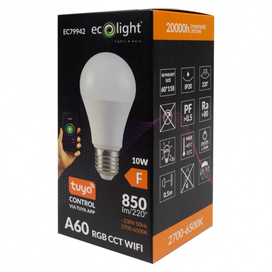 Żarówka LED CLASSIC E27 10W RGB CCT 850lm Wifi tuya