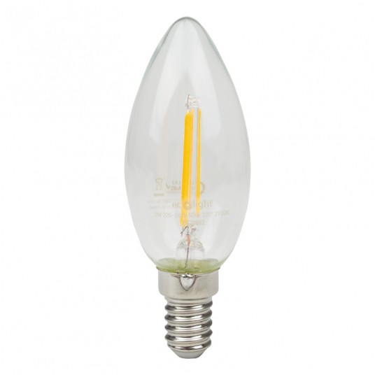 Żarówka filamentowa Eco-Light model EC20052 to eleganckie źródło światła w kształcie świecy, wyposażone w gwint E14. Żarówka ma moc 2W i pracuje przy standardowym napięciu 230V. Emituje ciepłe, białe światło o temperaturze barwowej 2700K, co tworzy przytulną atmosferę w pomieszczeniach.