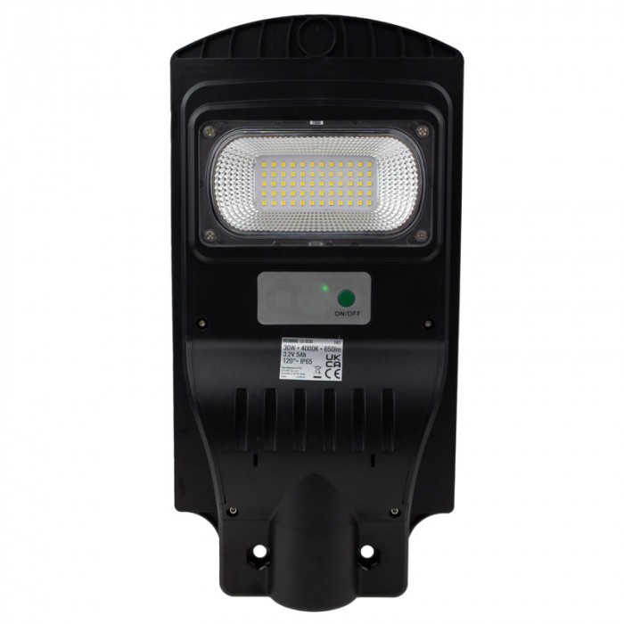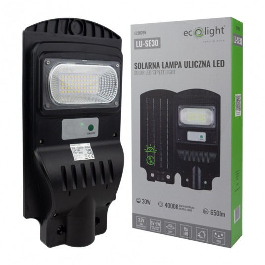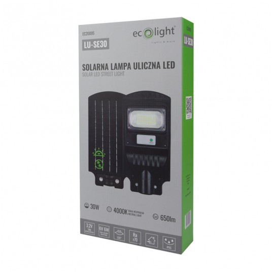 Lampa Uliczna Solarna o mocy 30W to doskonałe rozwiązanie do oświetlenia zewnętrznego obszaru. Posiada barwę światła 4000K, co zapewnia naturalne oświetlenie o jasności 650lm. Zasilana jest energią słoneczną dzięki wbudowanemu akumulatorowi litowo-żelazowemu o pojemności 3.2V 10Ah oraz panelowi solarnemu o mocy 6V 6W. Czas ładowania wynosi 5-8 godzin, co pozwala na efektywne wykorzystanie energii słonecznej. Wyposażona w mikrofalowy czujnik ruchu o zasięgu 8-10m, automatycznie się włącza po wykryciu ruchu, co pozwala oszczędzać energię i zapewnia dodatkowe bezpieczeństwo. Wykonana z wysokiej jakości materiału ABS, lampa jest odporna na warunki atmosferyczne, posiada klasę ochronności IP65 oraz szeroki zakres temperatury pracy od -20°C do +45°C, co sprawia, że nadaje się do użytku w różnych warunkach klimatycznych. Wyposażona w diody LED typu SMD2835, które są energooszczędne i trwałe. Produkt objęty jest 2-letnią gwarancją, co daje pewność jego jakości i niezawodności.