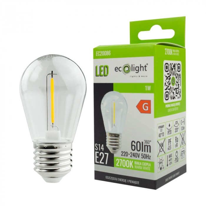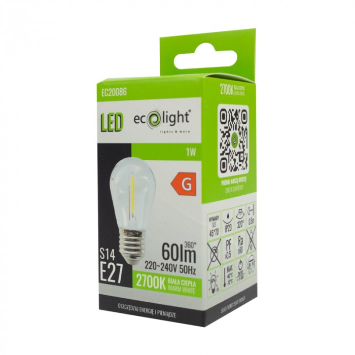 Filament Golf Ball S14 E27 1W 2700K 60lm