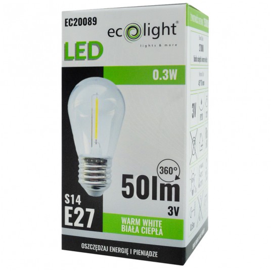 Filament Golf Ball S14 E27 0,3W 2700K 50lm 3V