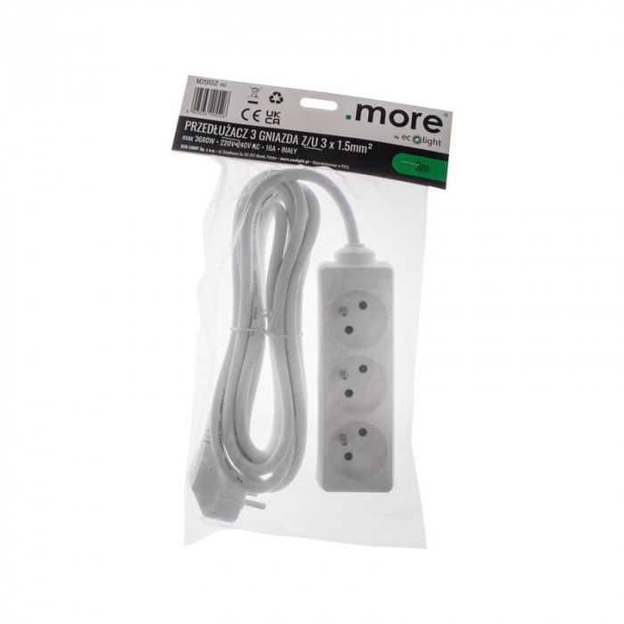 Przedłużacz 3 gniazda 3m 3x1.5mm2 BIAŁY