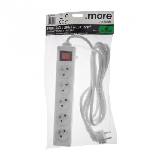 Przedłużacz 5 gniazd 3m z wyłącznikiem BIAŁY