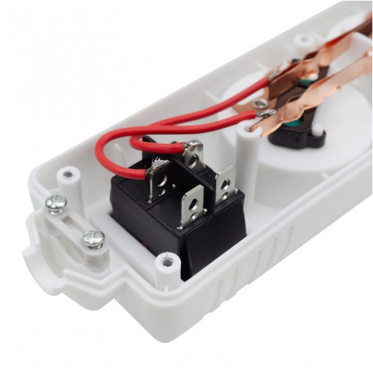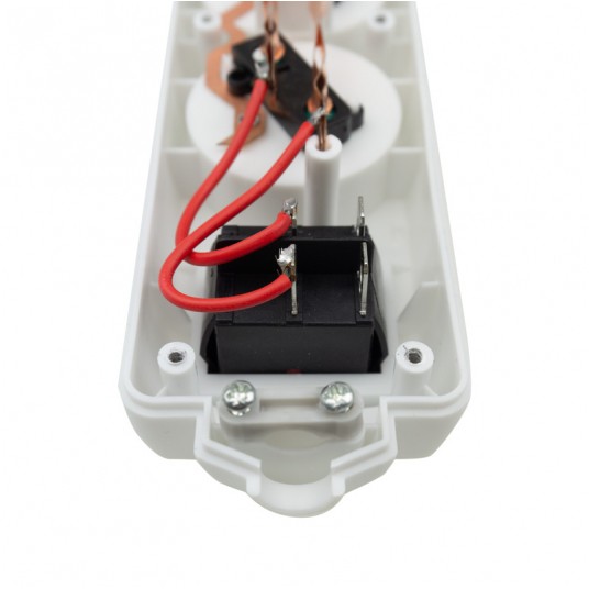 - Zintegrowany wyłącznik – w prosty sposób odetniesz zasilanie wszystkim podłączonym urządzeniom, co pozwala zaoszczędzić energię i zwiększa bezpieczeństwo.