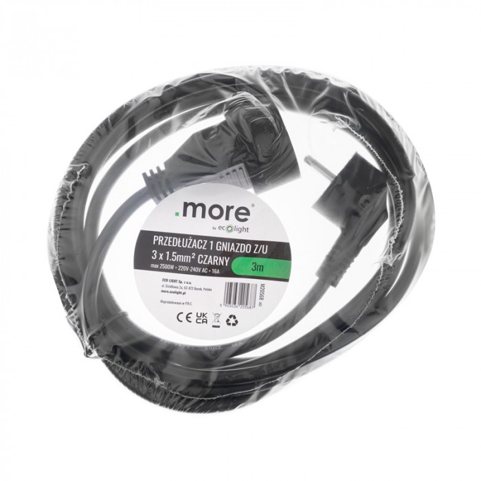 Praktyczny przedłużacz sieciowy z jednym gniazdem, wyposażony w przewód o długości 3 metrów i przekroju 3x1,5 mm². Wykonany z trwałych materiałów, sprawdzi się zarówno w domowych, jak i biurowych warunkach. Elastyczny kabel oraz solidna obudowa zapewniają długotrwałe i bezpieczne użytkowanie. Wbudowane uziemienie zwiększa poziom ochrony użytkownika oraz podłączonych urządzeń.