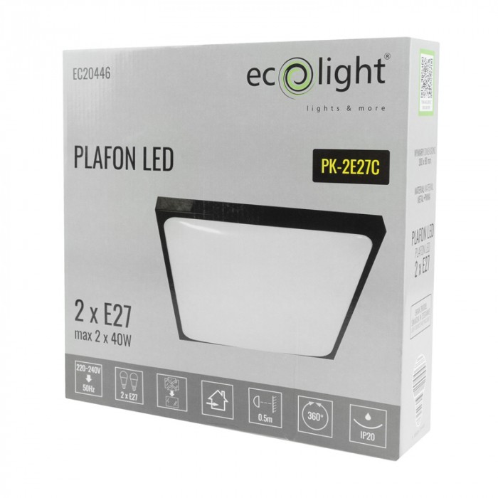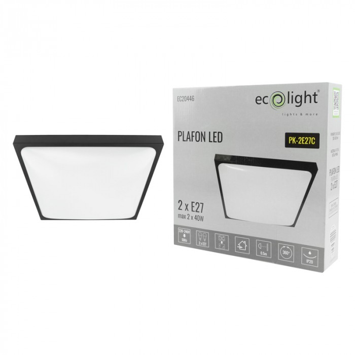 PLAFON 2xE27 NATYNKOWY KWADRAT CZARNY