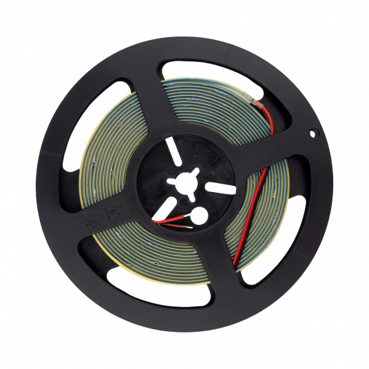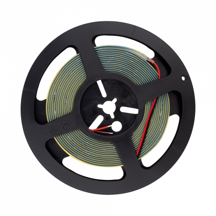 Prosty montaż – taśma ma tylko 8 mm szerokości, co pozwala na łatwe wkomponowanie jej w wąskie przestrzenie. Pracuje na napięciu 24V DC, co zwiększa bezpieczeństwo użytkowania.