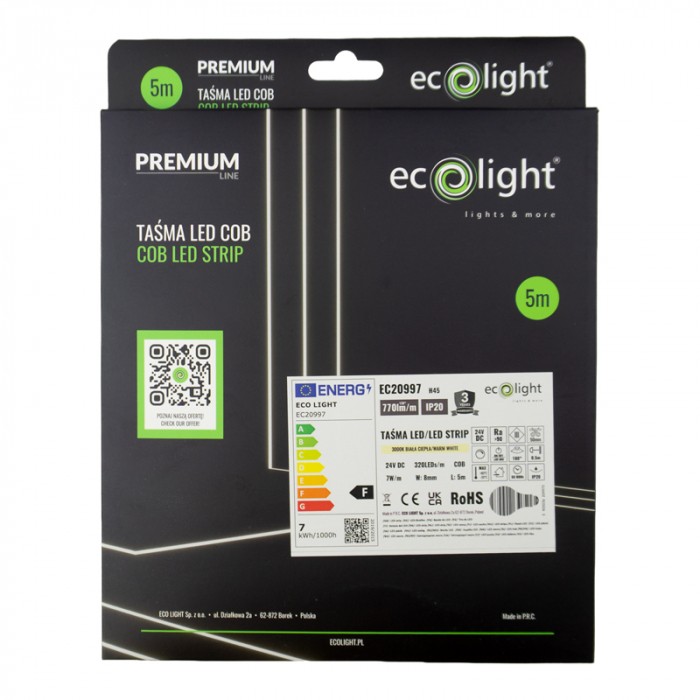 Energooszczędność – moc 7W/m i strumień świetlny 770 lm/m zapewniają doskonałe doświetlenie przy niskim zużyciu energii (klasa energetyczna F).