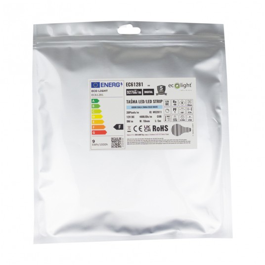 Taśma LED COB DIGIT 6000K to doskonały wybór do oświetlenia przestrzeni, które wymagają białego, zimnego światła. Jest idealna do podświetleń, dekoracji oraz innych zastosowań, w których liczy się jakość światła oraz efektywność energetyczna.