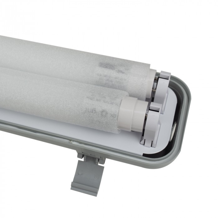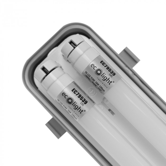 Zestaw ten składa się z hermetycznej oprawy o długości 120 cm oraz dwóch tub LED o zimnej białej barwie światła (6500K), które doskonale nadają się do oświetlania pomieszczeń, gdzie wymagana jest wysoka odporność na wilgoć i kurz, takich jak garaże, piwnice, warsztaty czy magazyny.