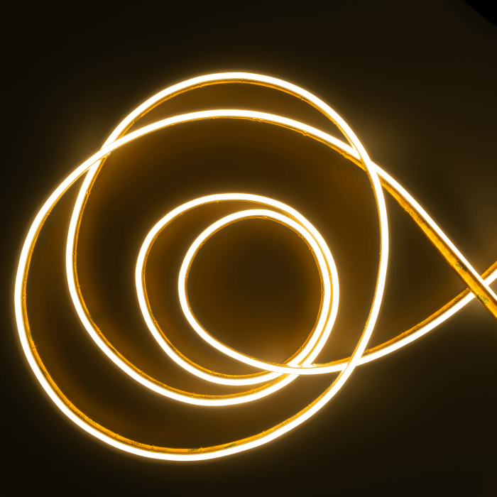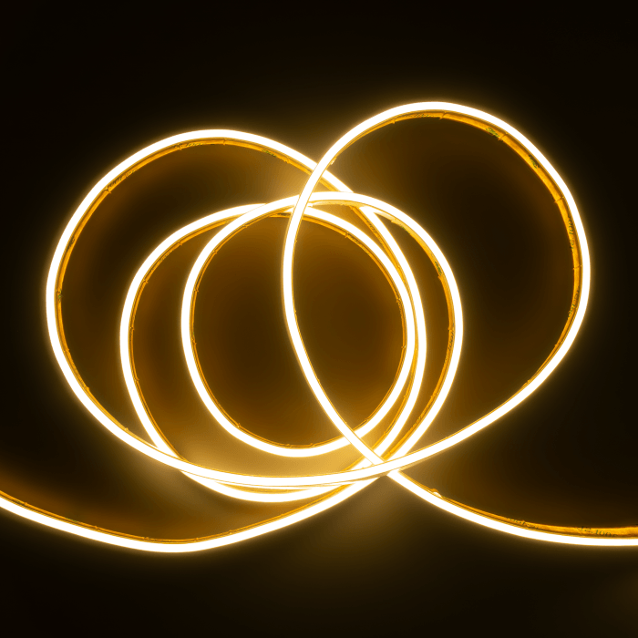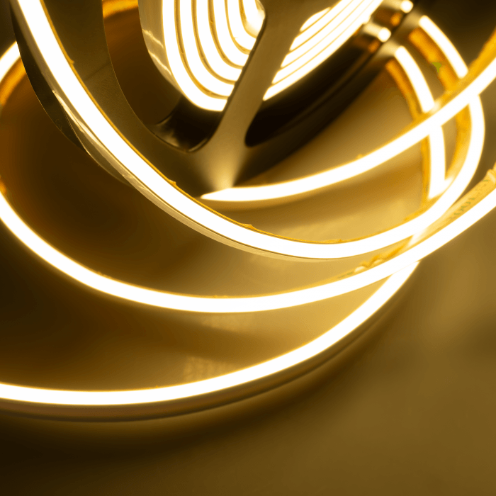 Elegancka taśma NEON COB 24V świecąca gładką, jednolitą linią – bez widocznych punktów LED. Barwa 3000K (biała ciepła) tworzy przytulny klimat w domu, hotelu czy restauracji. Dzięki IP67 sprawdzi się także w strefach narażonych na wilgoć i na zewnątrz.