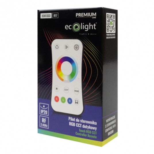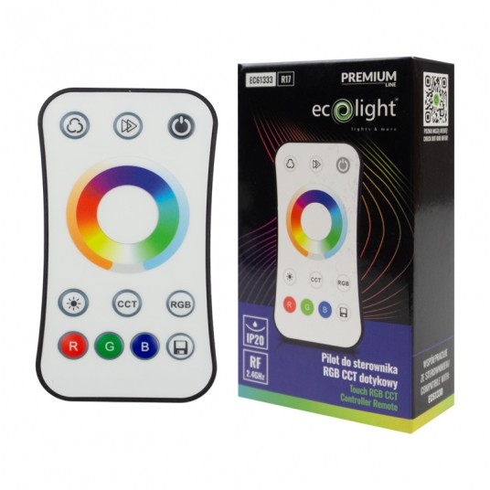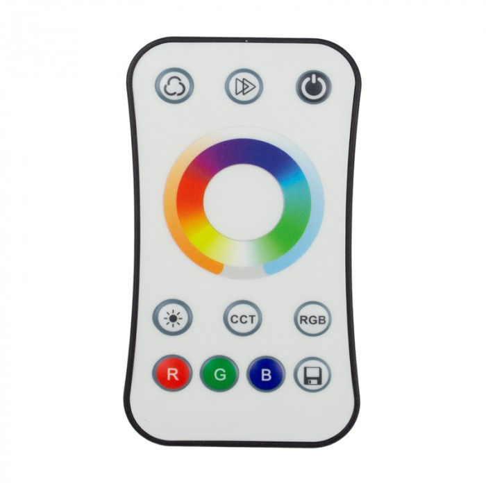 Smukły, biały pilot dotykowy RF zaprojektowany do współpracy ze sterownikiem V5-M RGB+CCT. Umożliwia wygodne sterowanie jedną strefą: szybkie ON/OFF, płynną regulację jasności, koloru RGB oraz temperatury bieli CCT (WW/CW). Łączność RF (fale radiowe) działa bez „celowania” – sygnał przechodzi przez meble i lekkie ścianki.