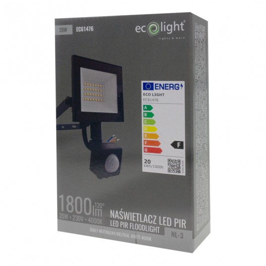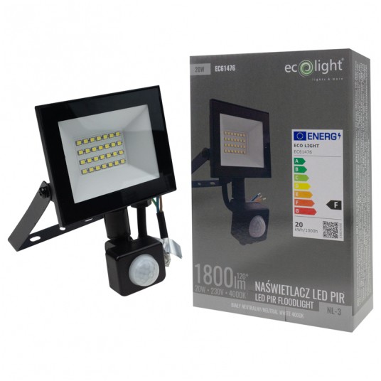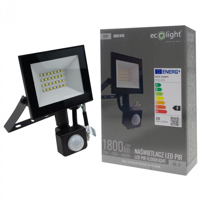 Naświetlacz LED PIR NL-3 20W 4000K IP54 – 1800 lm, kąt 120°