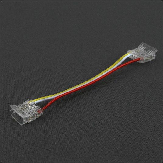 Elastyczne połączenie dwóch odcinków kolorowej taśmy COB DIGITAL bez lutowania. Dwustronna złączka 12 mm z fabrycznie dołączonym przewodem ok. 85 mm (≈10 cm) obsługuje układy RGB (4-pin), RGBW (5-pin) i RGBCCT (6-pin). Mechanizm zatrzaskowo-zaciskowy zapewnia pewny docisk padów, a niski profil ułatwia montaż w profilach aluminiowych. Doskonała do narożników, dylatacji i miejsc o ograniczonej przestrzeni. Do wnętrz (IP20).