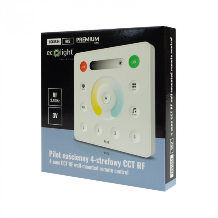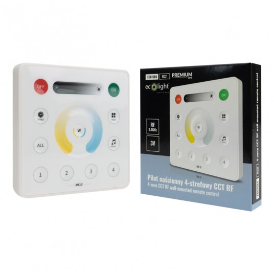 Stałe, wygodne sterowanie oświetleniem CCT z poziomu ściany. Panel RF współpracujący ze sterownikiem IC SD-2 umożliwia włącz/wyłącz, płynne ściemnianie 0–100% oraz zmianę temperatury bieli od ciepłej do chłodnej w 4 niezależnych strefach. Stabilna łączność radiowa, proste parowanie i wykonanie w standardzie PREMIUM LINE sprawdzą się w mieszkaniach, biurach i lokalach usługowych.