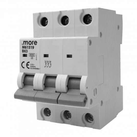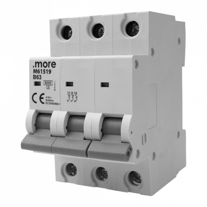 Wyłącznik nadprądowy B63A 6kA 3P – Trójfazowy aparat zabezpieczający o wysokiej niezawodności, przeznaczony do ochrony instalacji elektrycznych przed przeciążeniami i zwarciami.