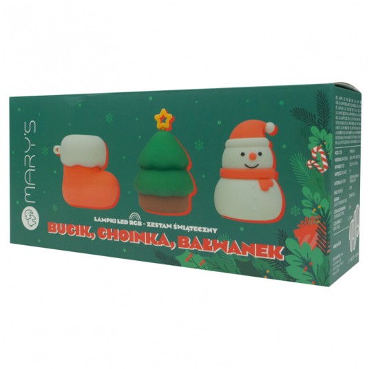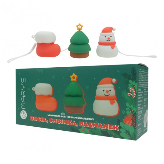 Zestaw świątecznych lampek MARY’S — Bucik, Choinka i Bałwanek — zamienia każdy kącik w przytulną, zimową scenę. Delikatne światło tworzy ciepły klimat podczas wieczornego czytania, a tryb kolorów pozwala jednym gestem dodać wnętrzu świątecznej magii. Miękki w dotyku silikon połączony z trwałymi tworzywami sprawia, że lampki są bezpieczne, lekkie i gotowe na codzienne użytkowanie na szafce nocnej, parapecie czy w dziecięcym pokoju.