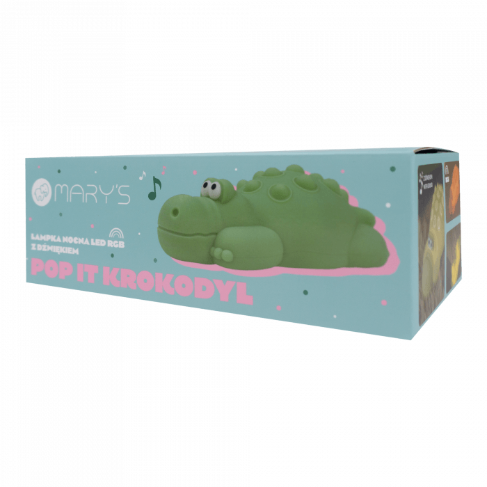 Smukła sylwetka łatwo mieści się na szafce nocnej lub biurku, a lekka konstrukcja ułatwia przenoszenie między pomieszczeniami. Zielony krokodyl szybko staje się ulubioną ozdobą, a w pudełku czeka przewód USB-C, więc od razu można włączyć go do wieczornego rytuału zasypiania.