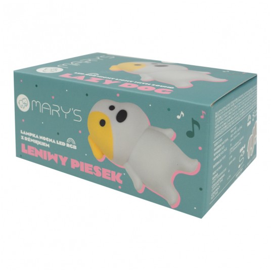 MARY’S Lampka Nocna LED RGB „Leniwy Piesek” z Budzikiem