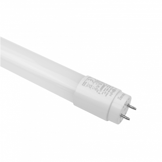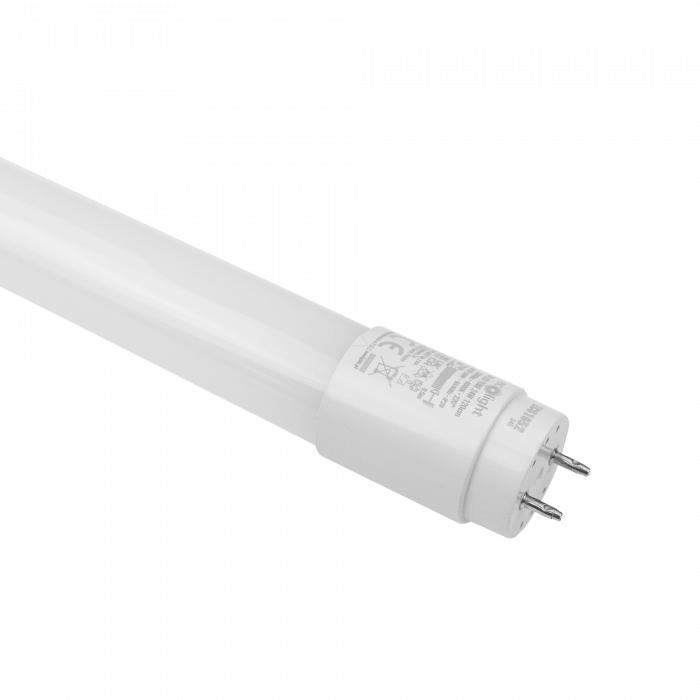 Neutralna barwa światła 4000K gwarantuje komfort widzenia i dobre odwzorowanie barw (CRI ≥80), co sprawdza się zarówno w strefach pracy, jak i zapleczu technicznym. Szeroki kąt świecenia 220° pozwala efektywnie doświetlić pomieszczenia, ograniczając powstawanie cieni. Tuba posiada trzonek T8 oraz zasilanie jednostronne, co ułatwia montaż w odpowiednio przystosowanych oprawach.