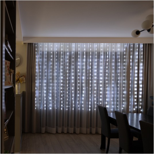 Dodaj czysty, chłodny blask 6500K do nowoczesnych aranżacji. Kurtyna 3 × 1 m z 200 diodami LED działa na bezpieczne USB 5 V, pobiera tylko 2,5 W i świetnie sprawdzi się w domu, biurze, witrynach oraz jako tło do foto/wideo.