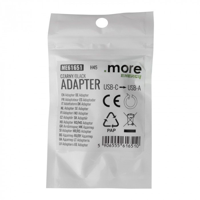 Adapter USB-C / USB-A czarny to praktyczne akcesorium, które umożliwia wygodne połączenie urządzeń wyposażonych w złącze USB-C z portem USB Typ-A. Dzięki uniwersalnej konstrukcji doskonale sprawdzi się w codziennym użytkowaniu — zarówno w domu, biurze, jak i podczas podróży.