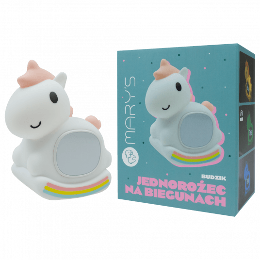 MARY'S lampka nocna z budzikiem Jednorożec na biegunach