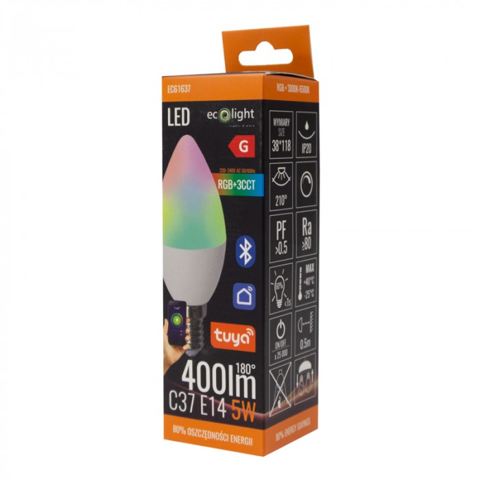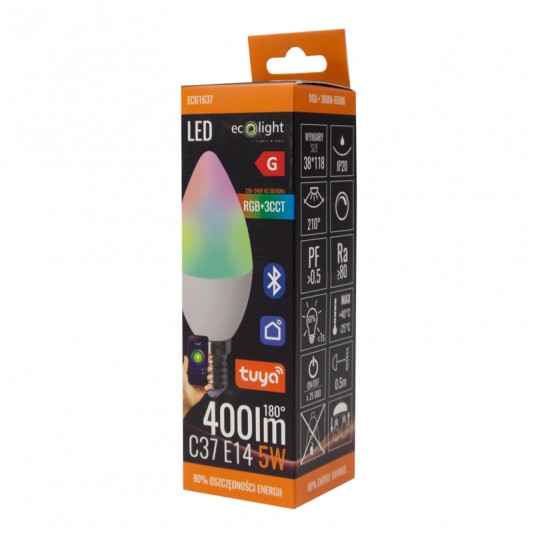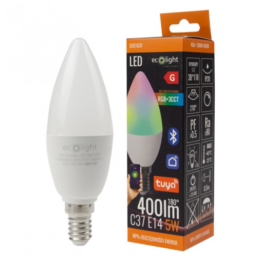 Żarówka LED C37 5W RGB+CCT Tuya Smart Bluetooth