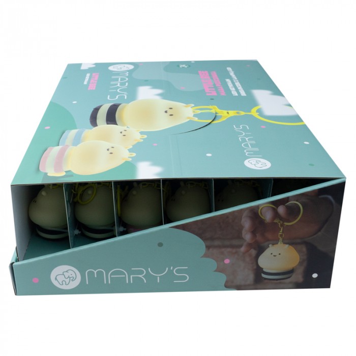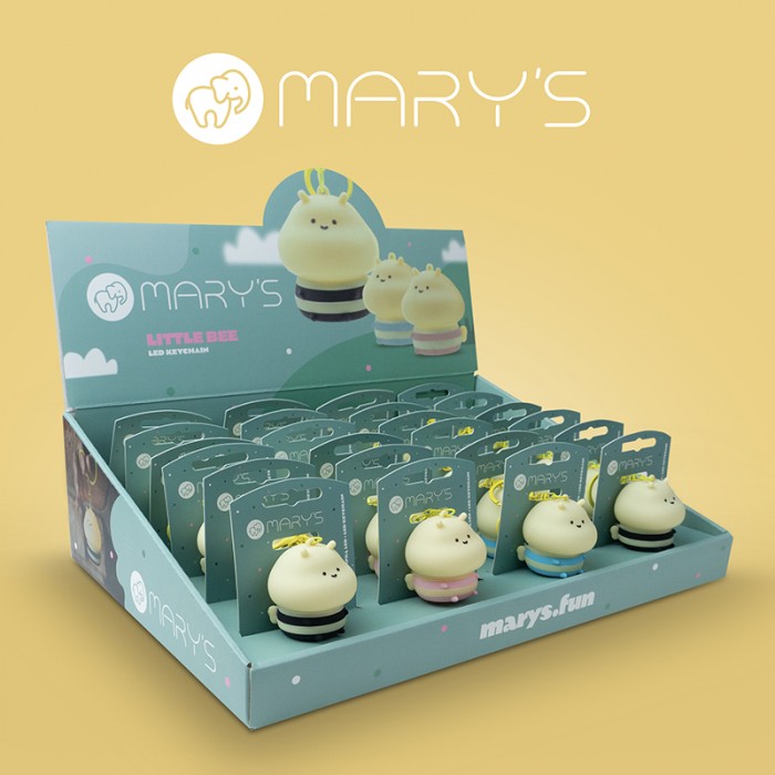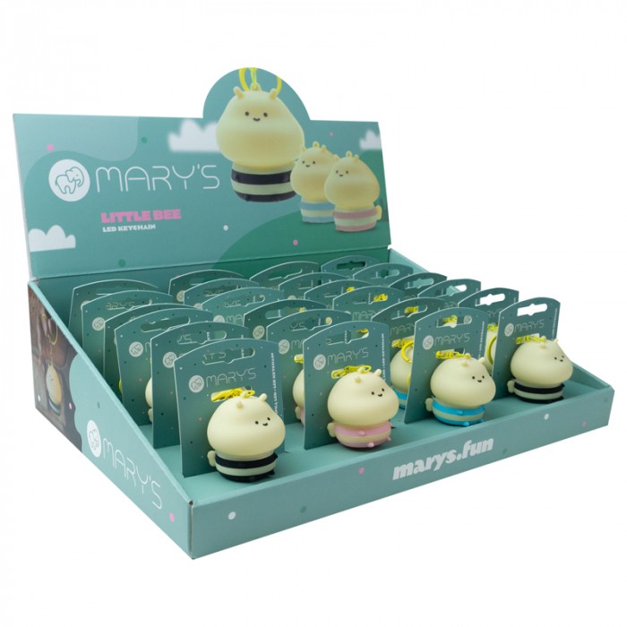 MARY'S breloczek LED mała pszczółka to uroczy i praktyczny gadżet, który sprawdzi się jako dodatek do kluczy, plecaka, piórnika czy dziecięcej saszetki. Po włączeniu brelok świeci ciepłym, białym światłem (3000K), dzięki czemu jest delikatny dla oczu, a jednocześnie wystarczająco jasny, by oświetlić zamek w drzwiach, wnętrze plecaka czy drogę po zmroku.