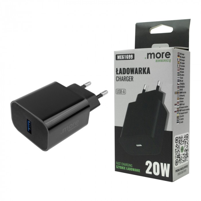Ładowarka sieciowa 20W USB-A, czarna to praktyczne i kompaktowe rozwiązanie do codziennego ładowania urządzeń mobilnych w domu, biurze lub w podróży. Dzięki portowi USB-A umożliwia wygodne zasilanie i ładowanie wielu popularnych urządzeń, takich jak smartfony, akcesoria mobilne czy inne urządzenia zgodne z ładowaniem USB.