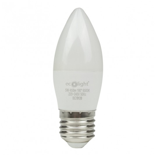Energooszczędna żarówka LED w eleganckim kształcie świecy, wyposażona w gwint E27. Posiada niski pobór mocy 5W oraz efektywność świetlną na poziomie 90 lm/W. Emituje zimne światło o temperaturze barwowej 6500K, które zapewnia precyzyjne i jasne oświetlenie.
